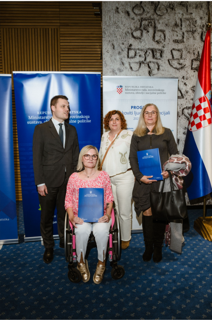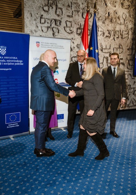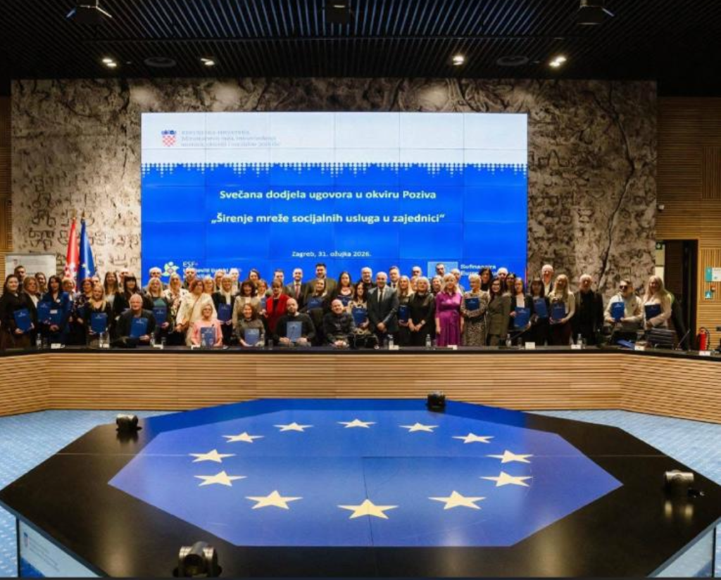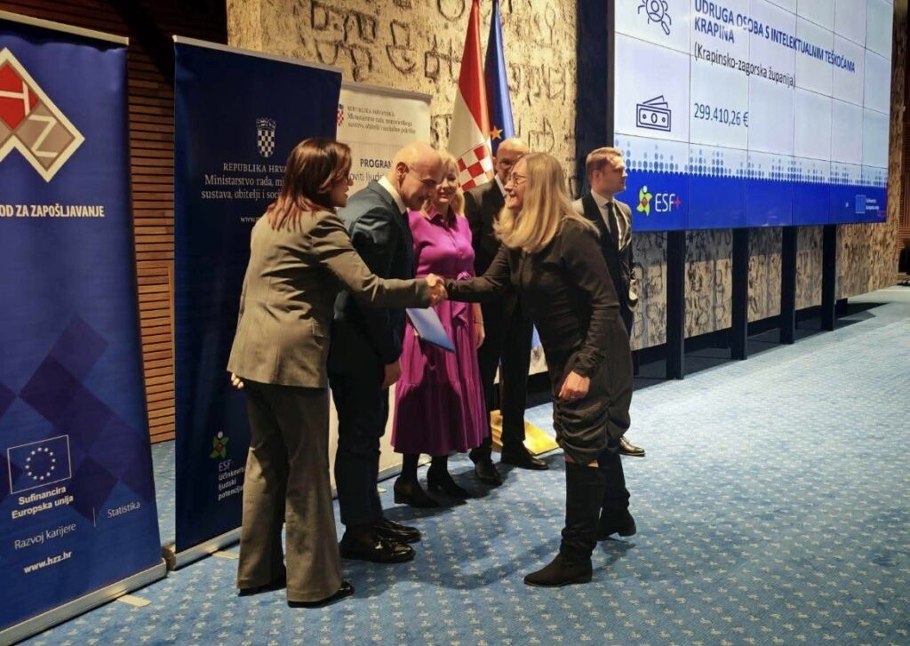U organizaciji Ministarstva rada, mirovinskog sustava, obitelji i socijalne politike, u utorak 31. ožujka 2026. godine održana je svečanost potpisivanja ugovora o dodjeli bespovratnih sredstava u sklopu poziva „Širenje mreže socijalnih usluga u zajednici“. Poziv je usmjeren na daljnje širenje i povećanje dostupnosti te kvalitete socijalnih usluga, razvoj lokalnih socijalnih usluga i širenje usluga u zajednici. Potpisano je 55 od ukupno 125 ugovora s ustanovama, organizacijama i jedinicama lokalne i područne samouprave, a jedna od njih je i naša Udruga osoba s intelektualnim teškoćama Krapina, s općinom Radoboj kao partnerom. Ugovor o dodjeli bespovratnih sredstava je uručio ministar Alen Ružić, a potpisala ga je naša predsjednica Ljiljana Mužar, u svrhu provođenja projekta pod nazivom „Usluge koje spajaju generacije“. Projekt će u periodu od 30 mjeseci provoditi Udruga OSIT Krapina u partnerstvu s Općinom Radoboj radi širenja mreže socijalnih usluga za odrasle osobe s intelektualnim teškoćama, njihove obitelji i starije osobe. Na području Krapinsko-zagorske županije nedostaje izvaninstitucijskih usluga, posebice u ruralnim područjima, što dovodi do socijalne izolacije i povećava rizik od institucionalizacije. Projekt će uključivati radionice, psihosocijalnu pomoć, edukaciju i međugeneracijska druženja. Cilj je poticanje socijalne uključenosti, aktivno starenje i podizanje kvalitete života ranjivih skupina. Sredstva dobivena za provođenje projekta iznose 299.410,26 EUR.
